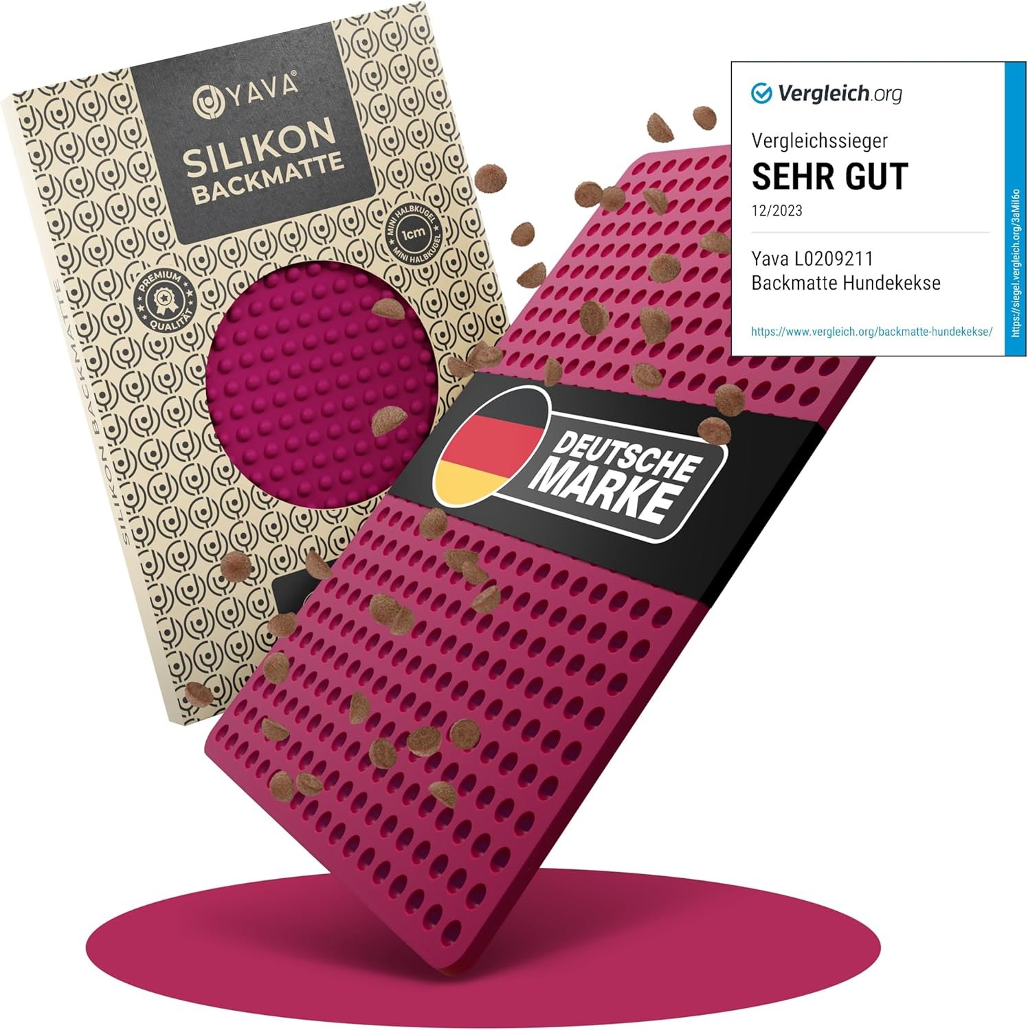 Perfekte Hundekekse: Die einzelnen Formen unserer Backmatten für Hundeleckerlis sind rund und klein. Die perfekte Silikon-Backmatte, um Hundeleckerlis schnell und einfach selbst zuzubereiten. Ihr Hund wird sich über gesunde, knusprige Leckerlis freuen. Wir von YAVA möchten Ihrem Hund Lebensqualität für den Alltag schenken