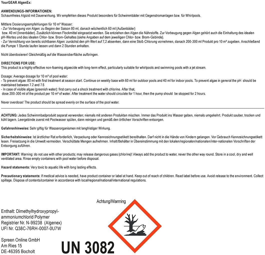 Your Gear AlgenEx – Algenpräventionskonzentrat, schaumfreies Algenmittel für klares Pool- & Schwimmbadwasser im 1 L- oder 3 L-Behälter zur Auswahl
