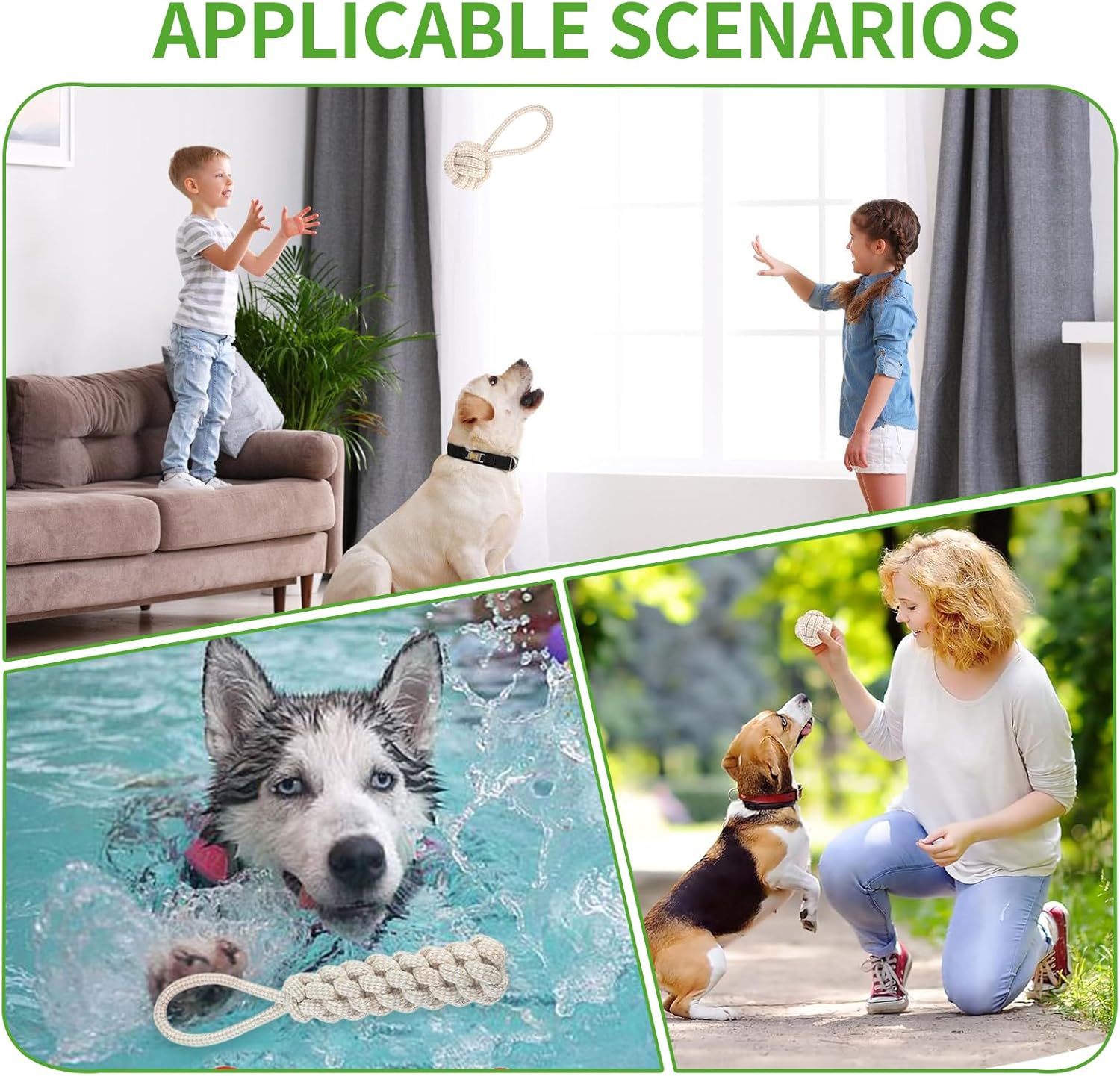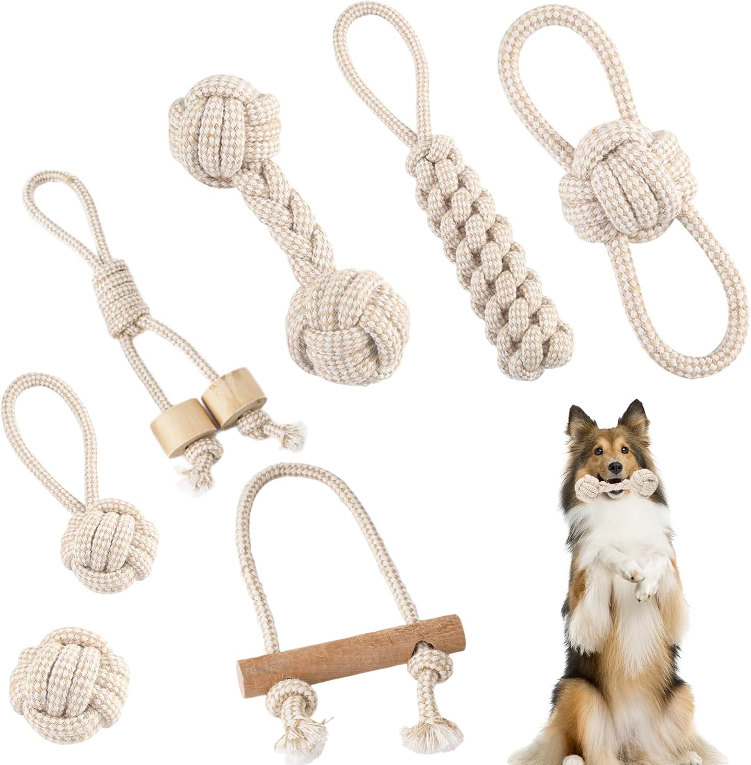 Das Paket beinhaltet: Sie erhalten 7 Stück verschiedene Arten von Haustierspielzeugseilen. Dieses Spielzeugseilset befriedigt die natürlichen Instinkte Ihres Hundes zum Ziehen, Apportieren, Jagen und Kauen und ermöglicht Ihrem Hund verschiedene Spielweisen