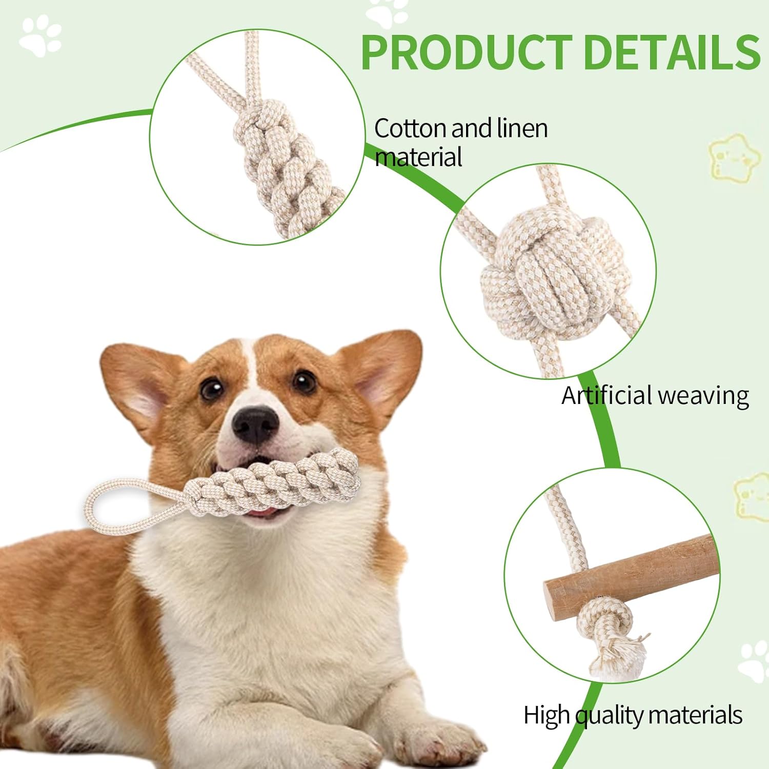 1. Hundespielzeugseil aus natürlicher Baumwolle und Leinen, sicher und langlebig