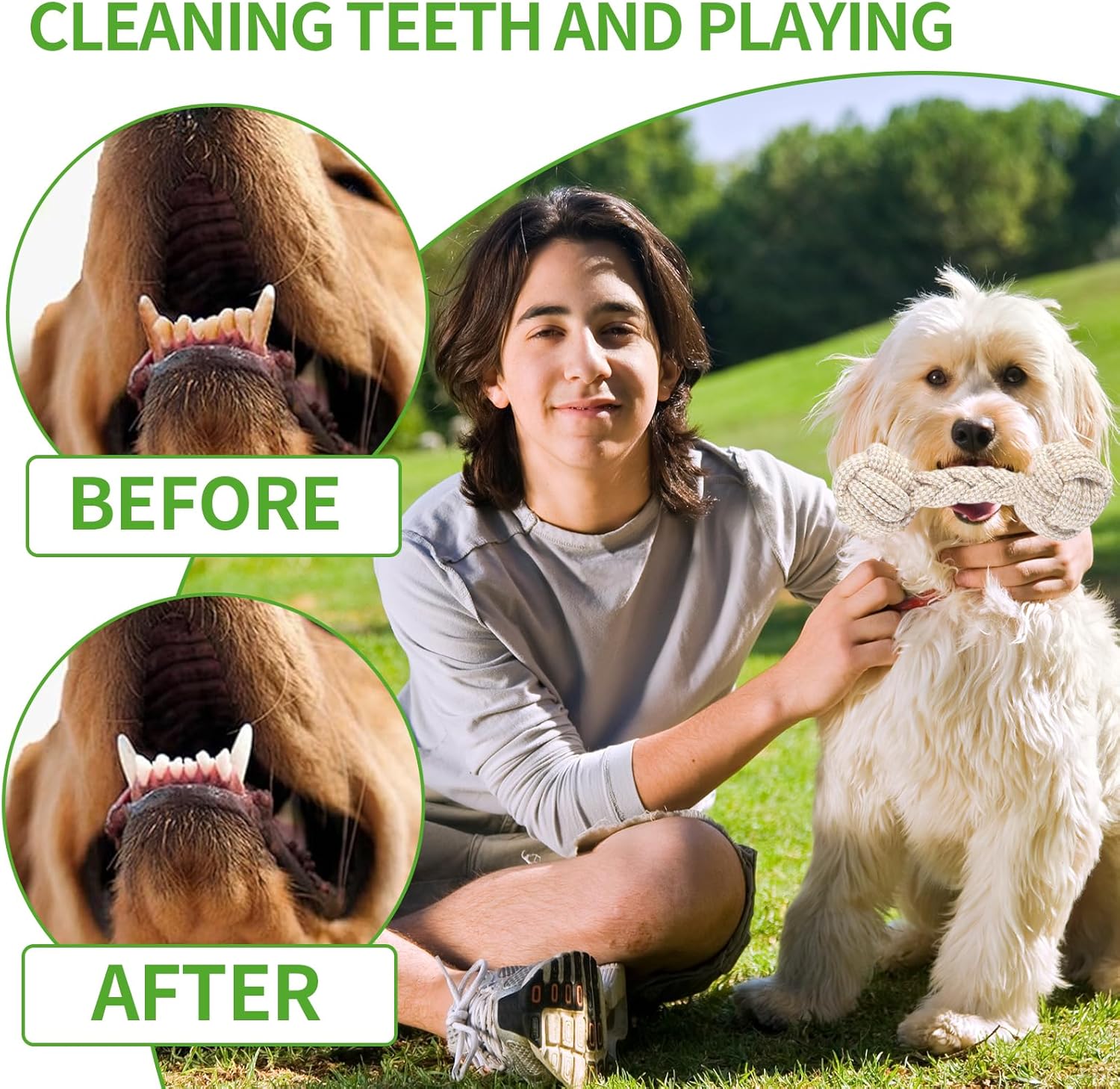 Leicht zu reinigen: Spielzeug-Hundeseil kann von Hand gewaschen oder einfach in die Waschmaschine gegeben werden, dann an der Luft trocknen, wiederverwendbar, Geld sparen, wir empfehlen die Reinigung zweimal pro Woche, um die Gesundheit Ihres Hundes zu gewährleisten