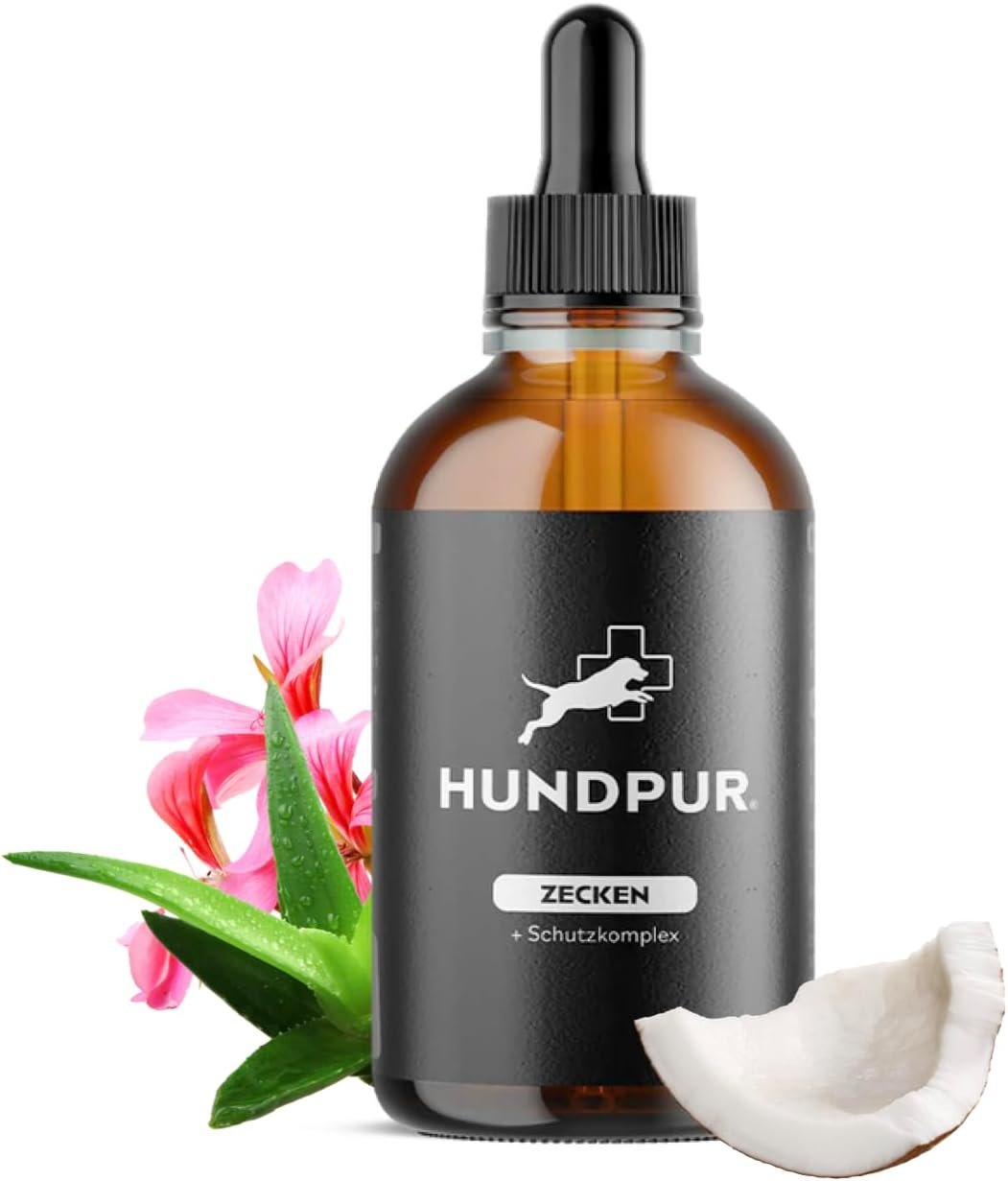 Effektiver Zeckenschutz: Hundpur Zeckentinktur wehrt Zecken und andere Parasiten dank Zitronen-Eukalyptus- und Geranienöl ab und lässt sie absterben, wenn sie dennoch auf das Fell gelangen