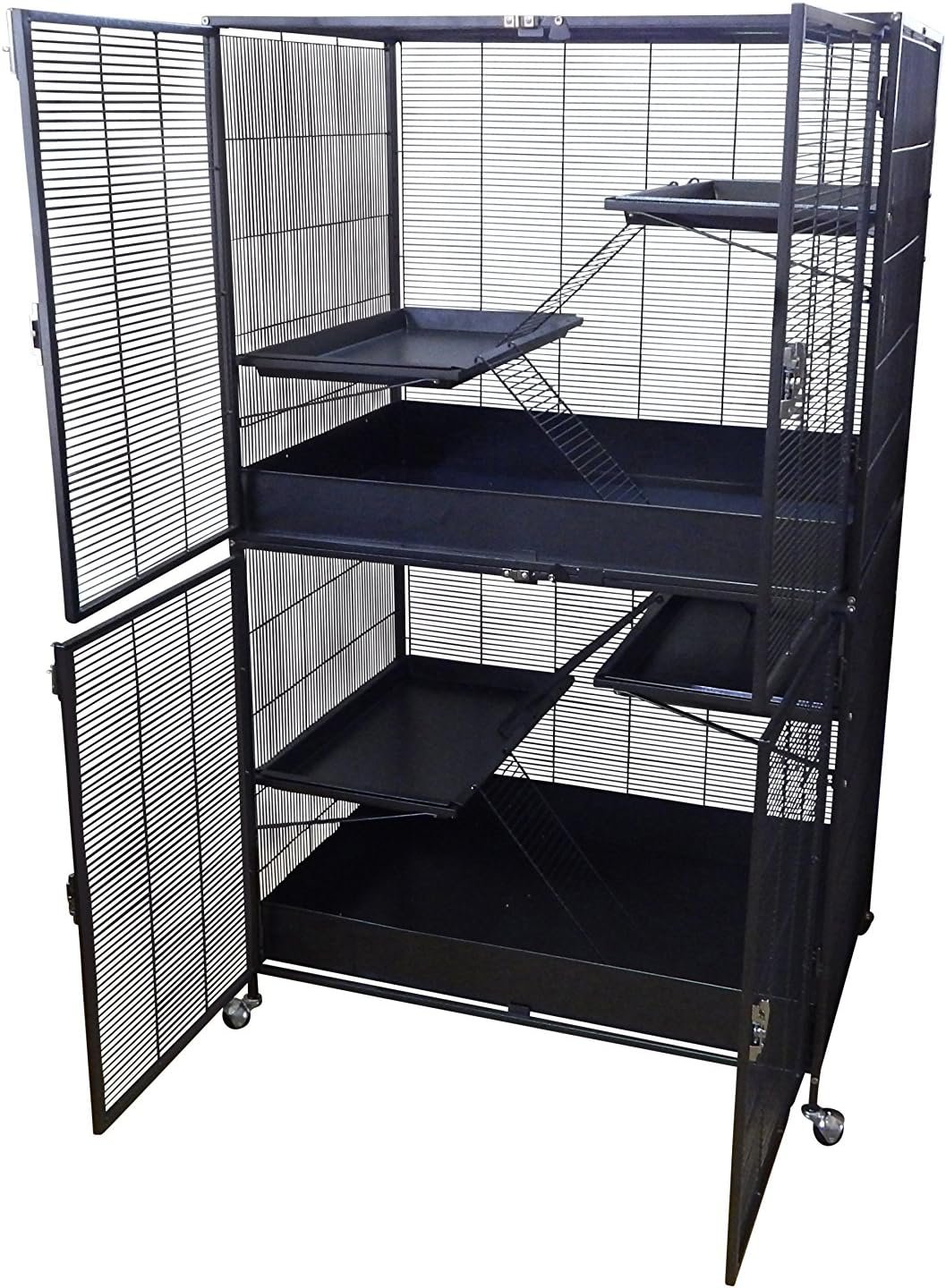 Darüber hinaus lässt sich die obere Kotschublade mit einer mitgelieferten Klappe verschließen, sodass Sie daraus 2 separate Käfige bauen können.