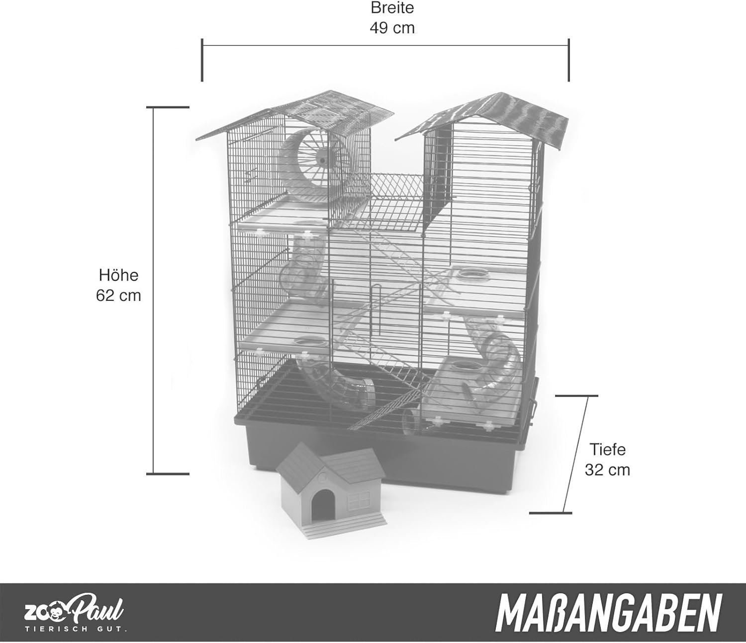Mit seinen Maßen von 62 x 49 x 32 cm bietet er viel Platz für Kleintiere.