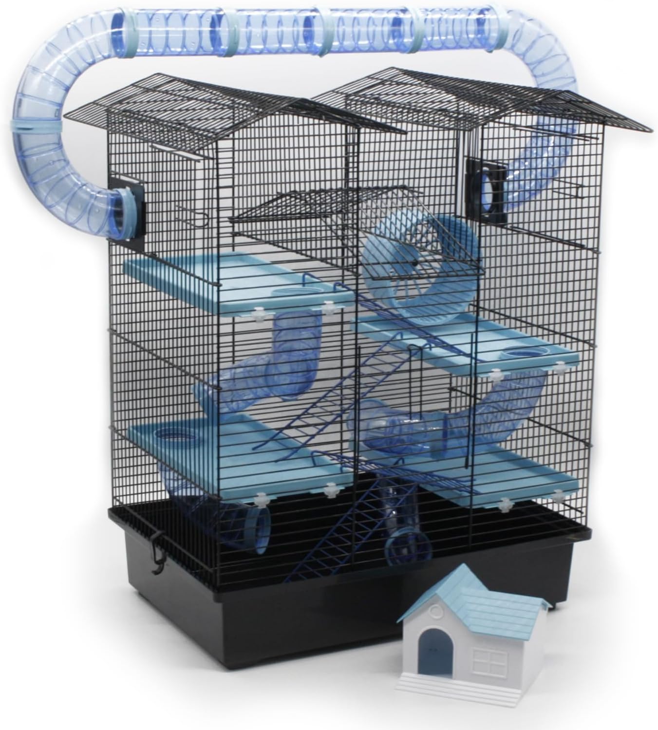 ZooPaul CH2 Plus XXL Nagerkäfig Hamsterkäfig mit Zubehör Maus Hamsterkäfig Tunnelsystem Haus (Schwarz Blau)