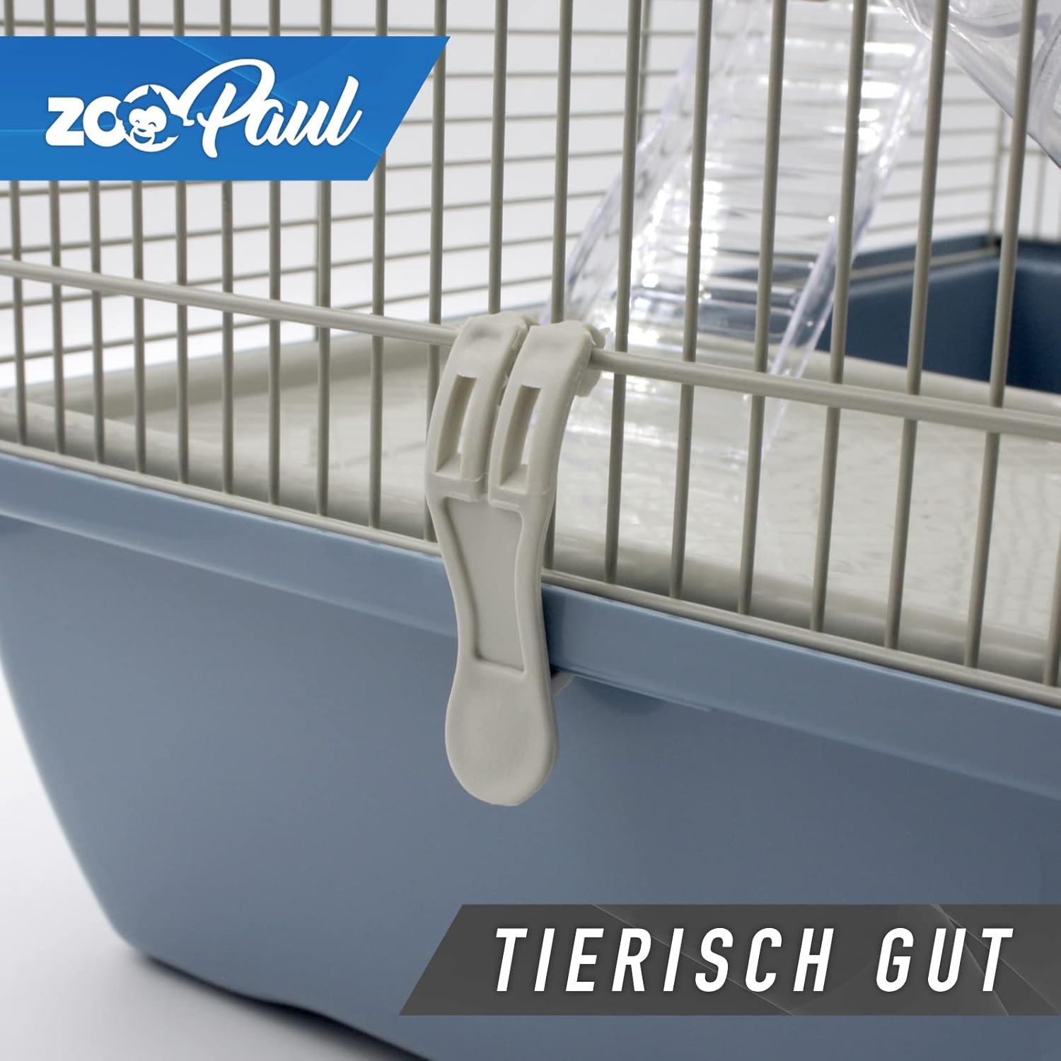 Unser Nagerkäfig ZooPaul im einzigartigen Pastell-Look. Verleihen Sie Ihrem Wohnzimmer den letzten Schliff mit diesem tollen Hamsterkäfig in Grau und Pastellblau. Es ist das absolute Spielparadies für Ihren kleinen Nager. Der Käfig enthält eine Vielzahl toller Zubehörteile wie ein Haus und ein Rad. So wird sich Ihr kleiner Freund nicht mehr langweilen.