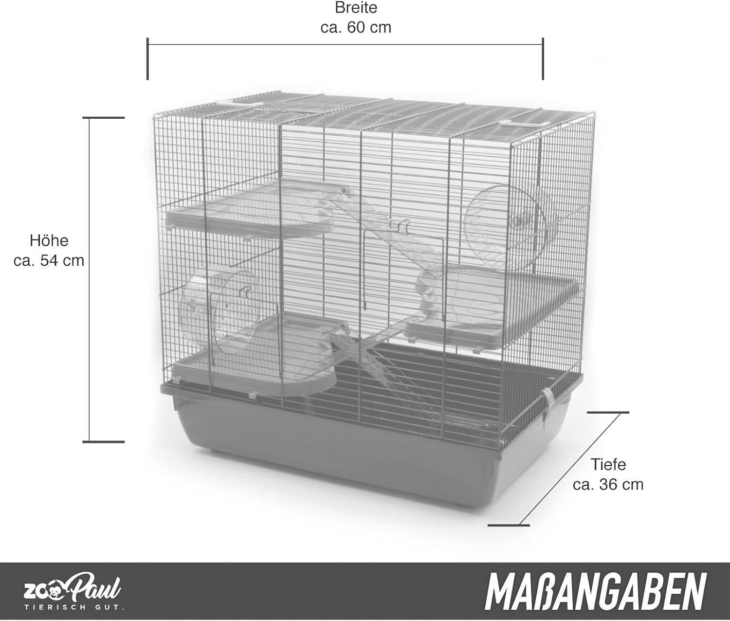 Mit seinen Abmessungen von ca. Mit seinen Maßen von ca. 54 x 60 x 36 cm (H x B x T) bietet er viel Platz für Kleintiere.