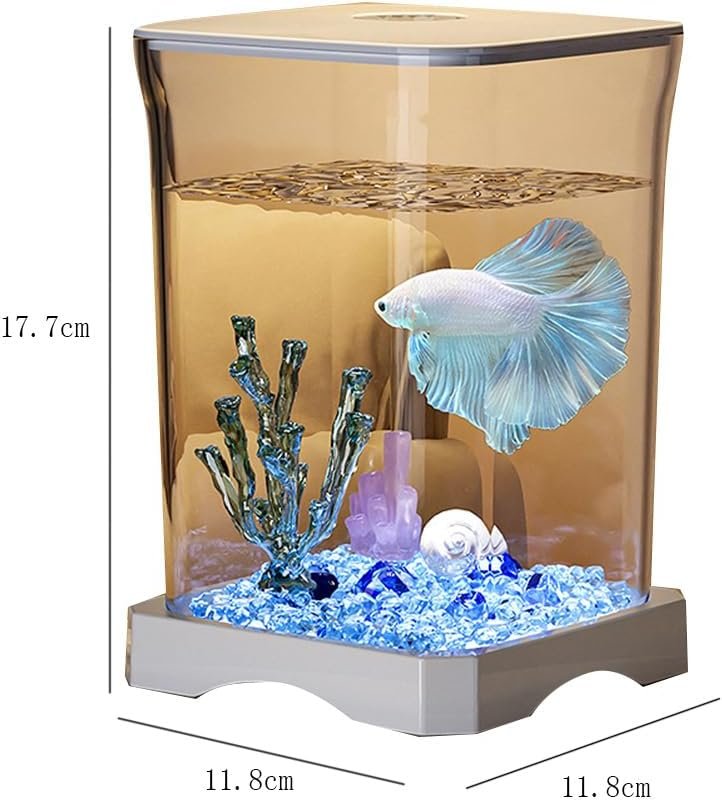 Aquarium mit Deckel: Größe: 11,8 x 11,8 x 17,7 cm, Aquarium-Set, ideal für Schreibtisch, Büro, Schlafzimmer, Esszimmer-Dekoration.