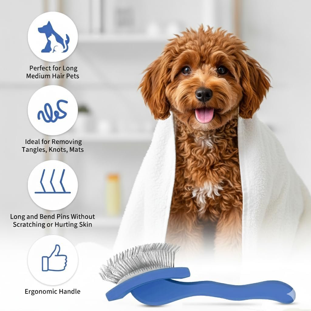 Sanft zur Haut, stark gegen Knoten – Die Hundebürste entfernt Knoten und Verfilzungen gründlich, ohne die Haut zu reizen. Ideal für Hunde mit empfindlicher Haut wie Goldendoodle, Cocker Spaniel oder Shih Tzu und für Katzen, die eine sanfte Bürste mögen.