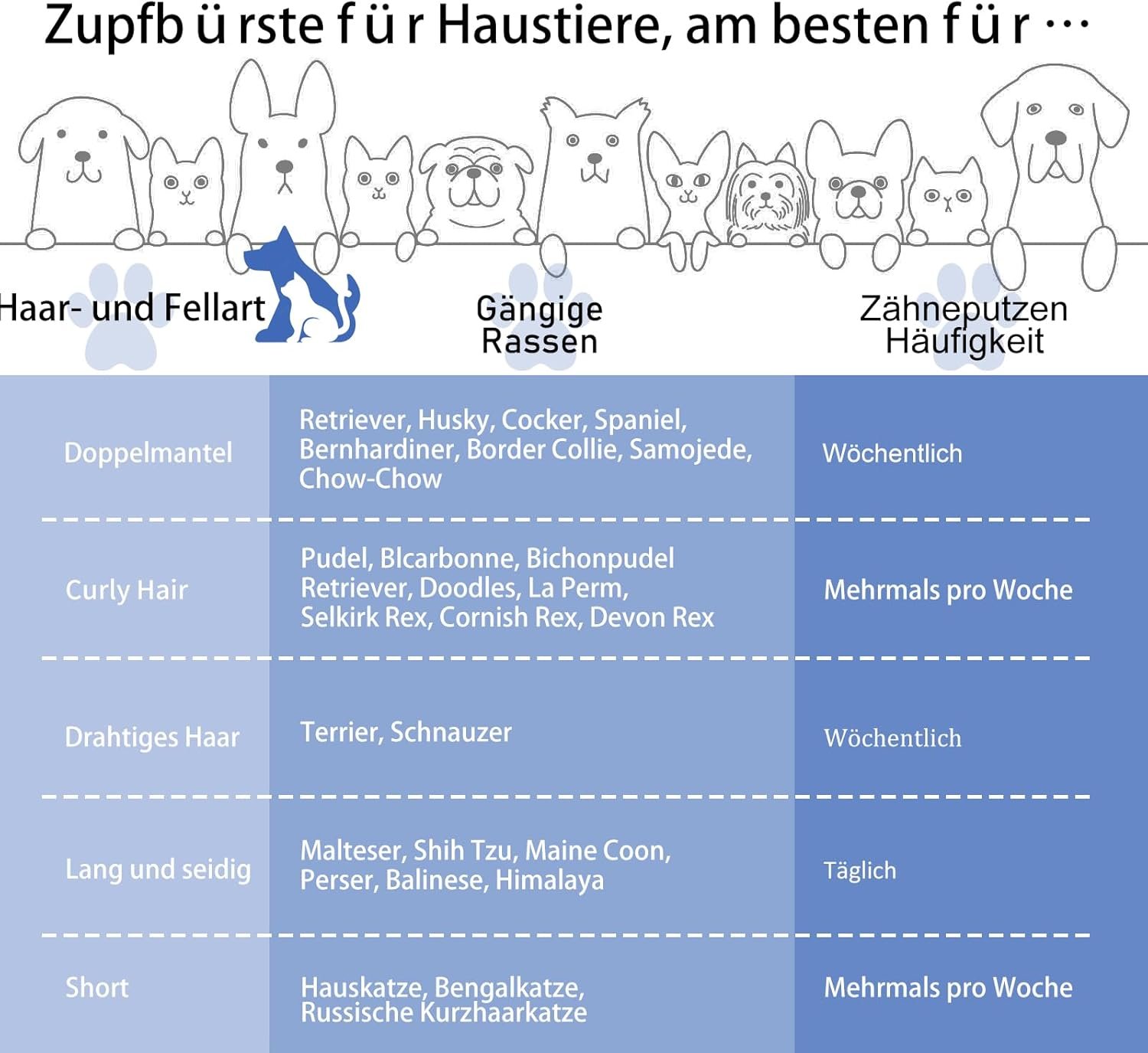 Gesundes, glänzendes Fell – Regelmäßiges Bürsten mit Zupfbürste und Kamm entfernt lose Haare, reduziert Haarausfall im Alltag und massiert die Haut. Dadurch bleibt das Fell langhaariger Hunde und Katzen gepflegt, weich und leicht kämmbar.