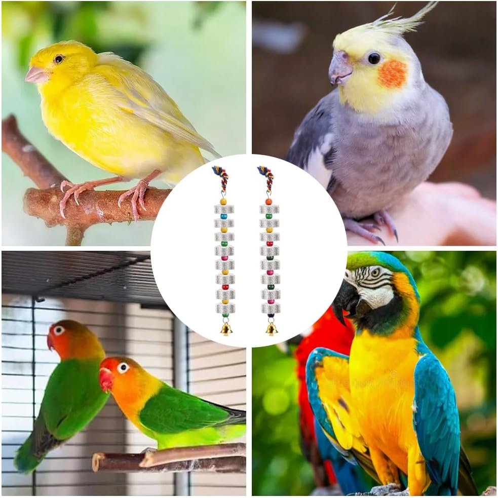 Extra langes Kaufspielzeug: Vogel-Schleifsteine mit Glöckchen verfügen über ein längliches Design, um den Bedürfnissen von Vögeln nach langfristigem Kauverhalten gerecht zu werden. Vogel-Schleifsteinschnur kann Papageien, Kakadus und anderen Liebesvögeln dabei helfen, ihre Natur zu entwickeln, Langeweile zu lindern und schlechte Angewohnheiten wie Federpicken zu vermeiden