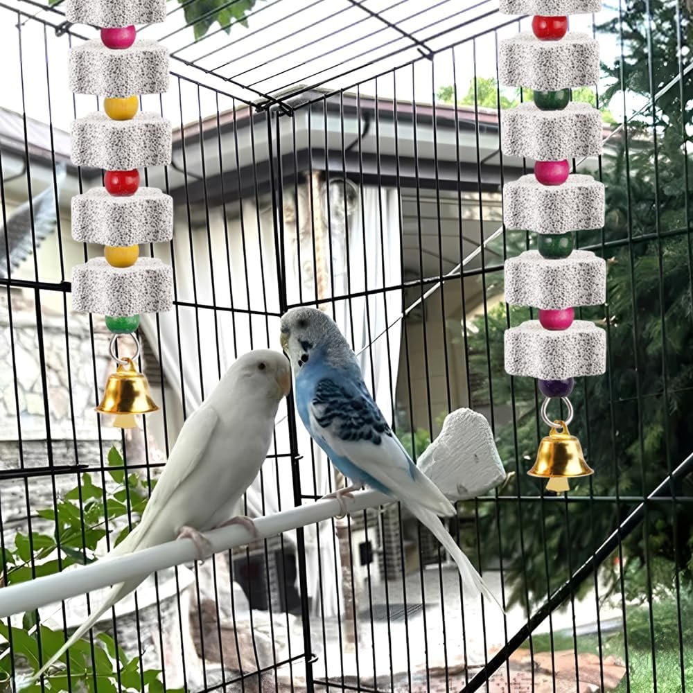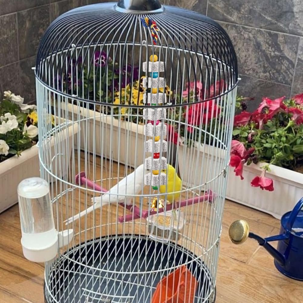 Das Spielzeug für Wellensittiche verwendet sicheren mineralischen Kalziumstein, um Vögeln dabei zu helfen, auf natürliche Weise ihre Schnäbel zu mahlen und ihren Mund zu reinigen, während es gleichzeitig Mineralien auffüllt, um die Gesundheit zu fördern.